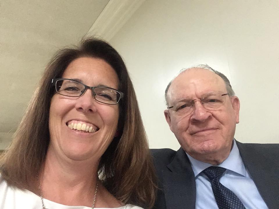 enjoyed sitting with the man who baptized her, Pastor Jack Green.